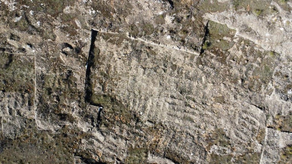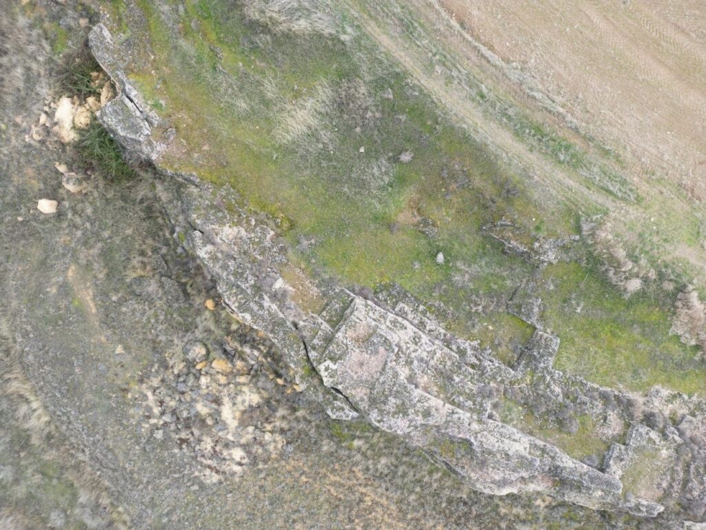 Figura 2. Área central de la cantera de Peña del Gato (Buendía), con huellas de sillares extraídos visibles (Isabel Ludeña, 2024).